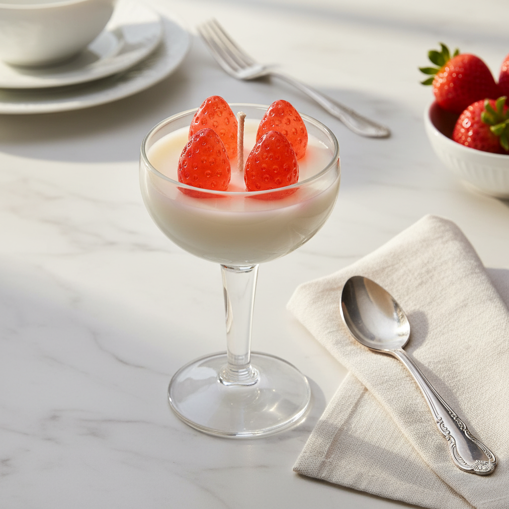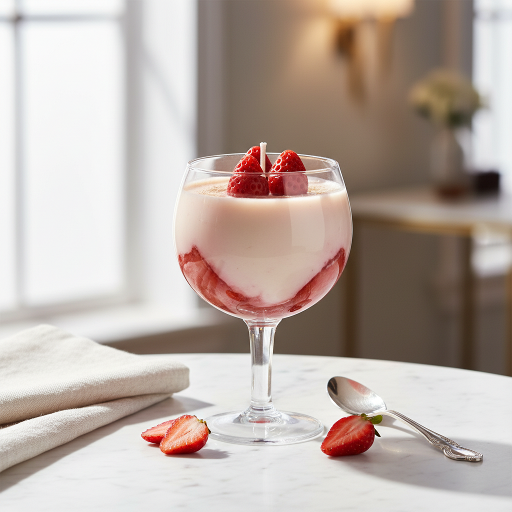 Shop handcrafted glass candles with sweet fragrance made from gel and soya wax. Available in strawberry, cherry, and sunflower aromas — perfect for décor, gifting, and relaxation.